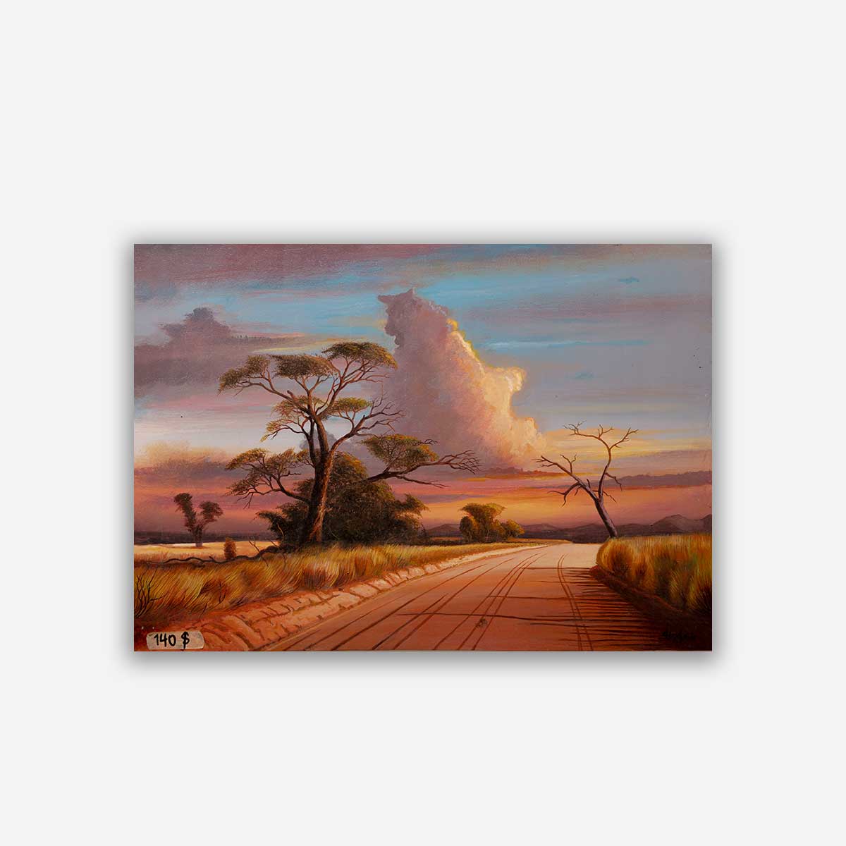 & Free ShippingA breathtaking sunset landscape capturing an African savannah road bathed in warm light. The glowing sky, dramatic cloud formations, and distant hills create a peaceful and nostalgic atmosphere. This artwork brings warmth and beauty to any living room, office, or studio.