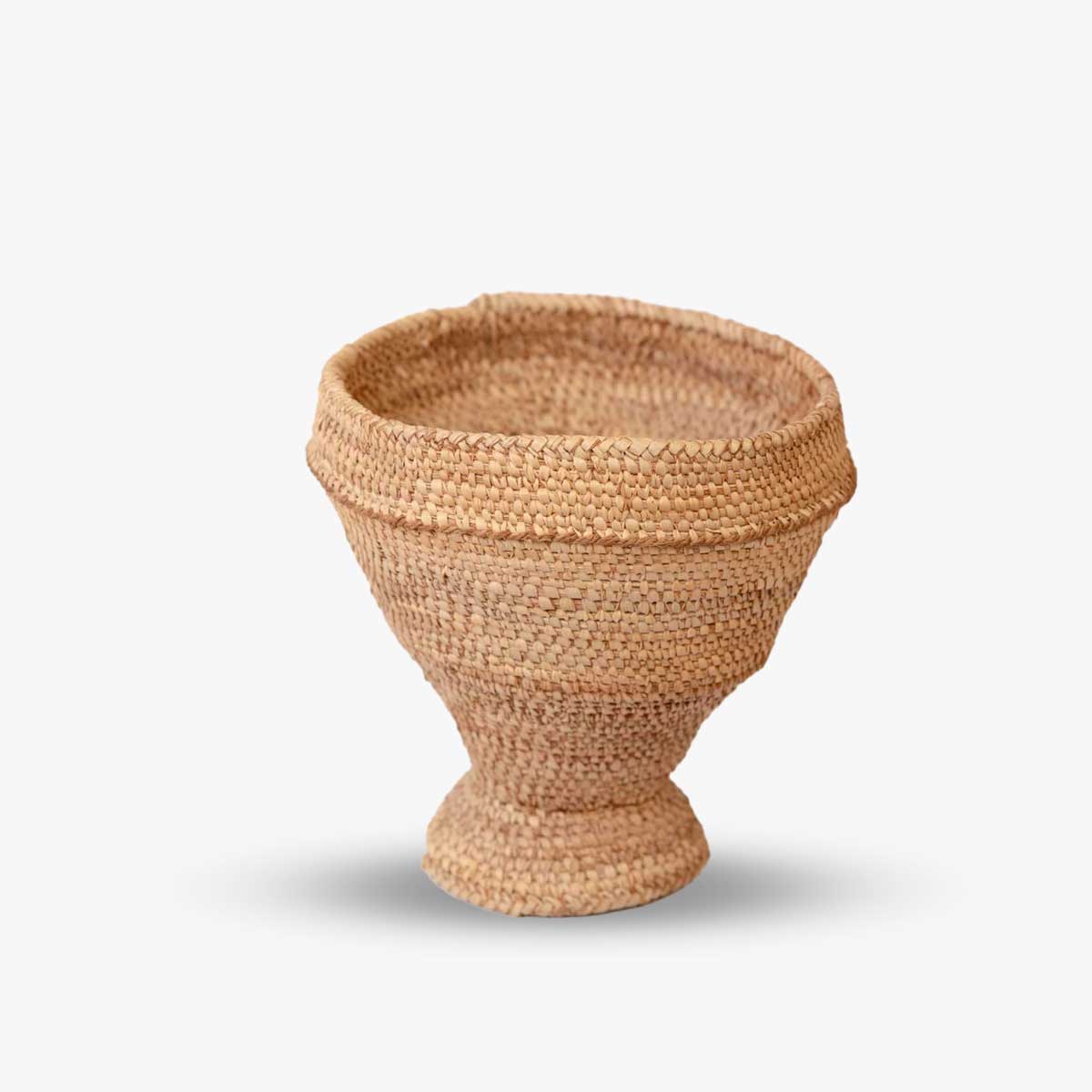 A classic Hadhuub bowl handwoven from high-quality natural fibers. The elevated base and tight weaving create a beautiful, sturdy piece suitable for serving dry foods, storing items, or displaying as a cultural art piece.